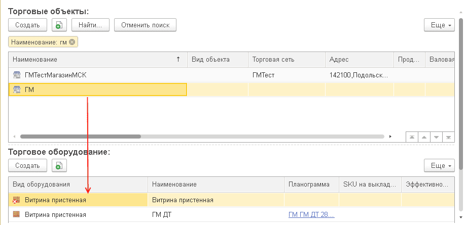 Так же выводится признак размещено ли торговое оборудование на схеме магазина (если схема была загружена и если применяется данный функционал) - Да/Нет.