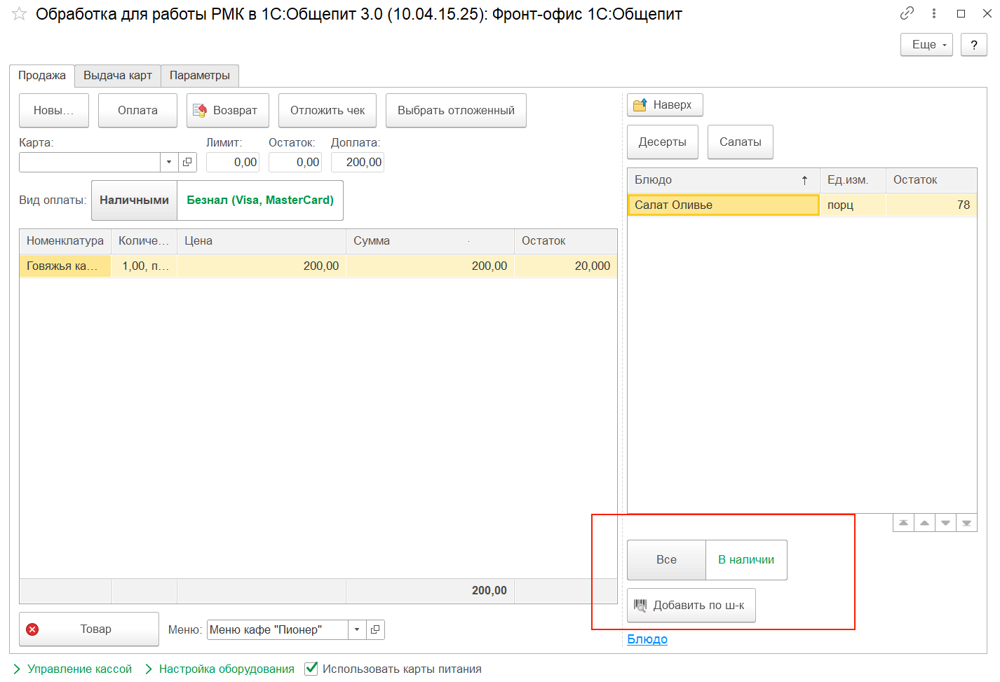 Для этого в РМК существуют различные настройки и опции, которые могут работать как независимо, так и в связке с другими настройками как РМК, так и 1С:Общепит.