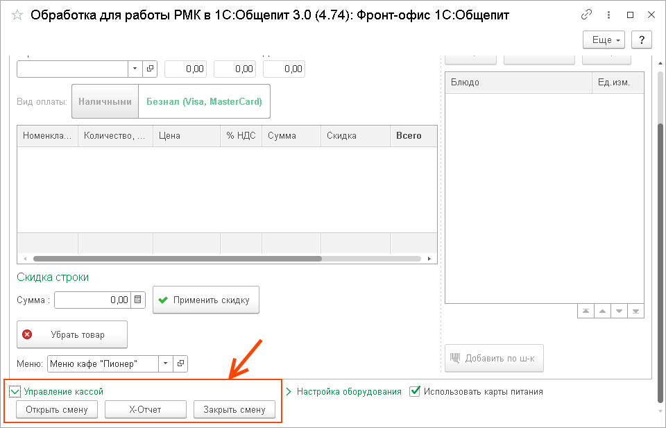 А это значит, что все основные процессы продажи, пробития и печати чеков это все процессы 1С:Общепит.